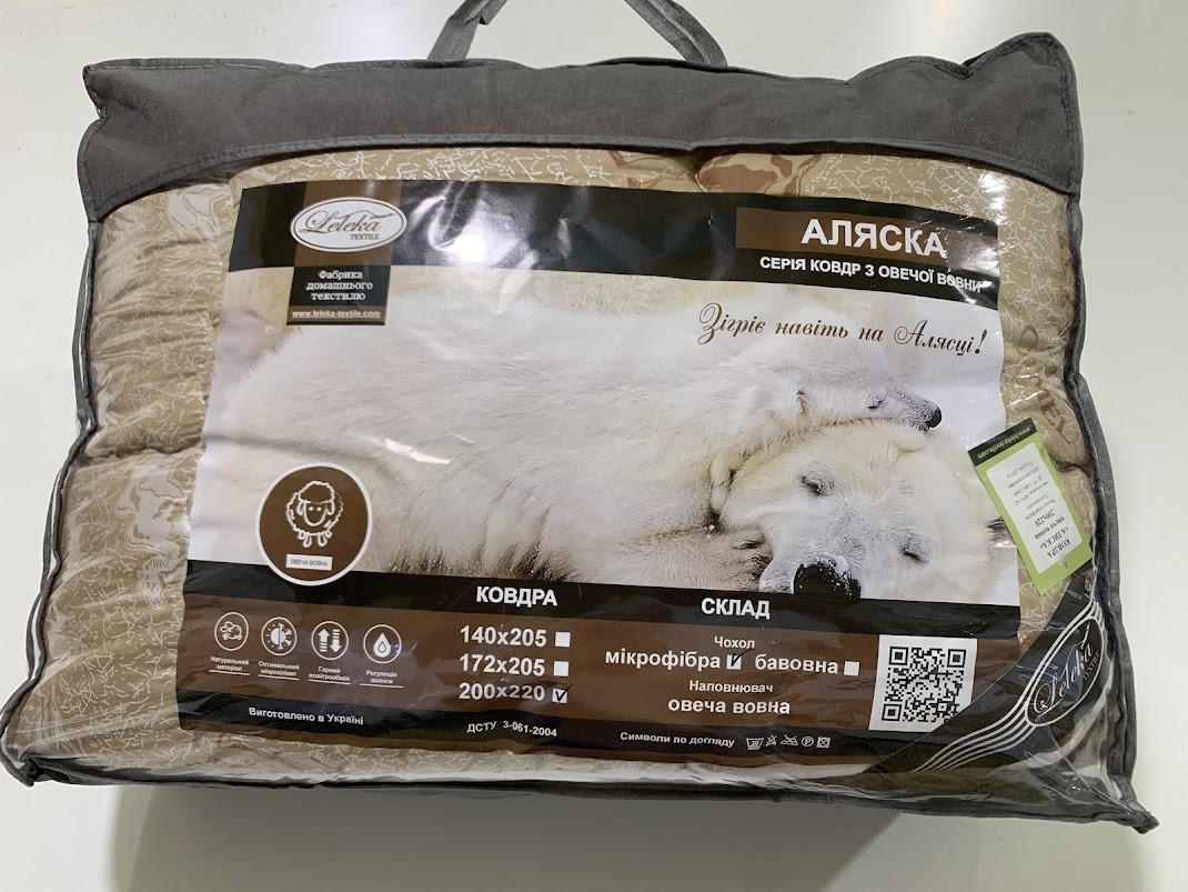 Ковдра Аляска овеча вовна - це одна з найтепліших вовняних ковдр в нашому асортименті. Завдяки подвійному прошарку наповнювача з овечої вовни ця ковдра зігріє Вас в холодну пору року. У нас Ви можете купити ковдру з овечої вовни потрібного розміру.